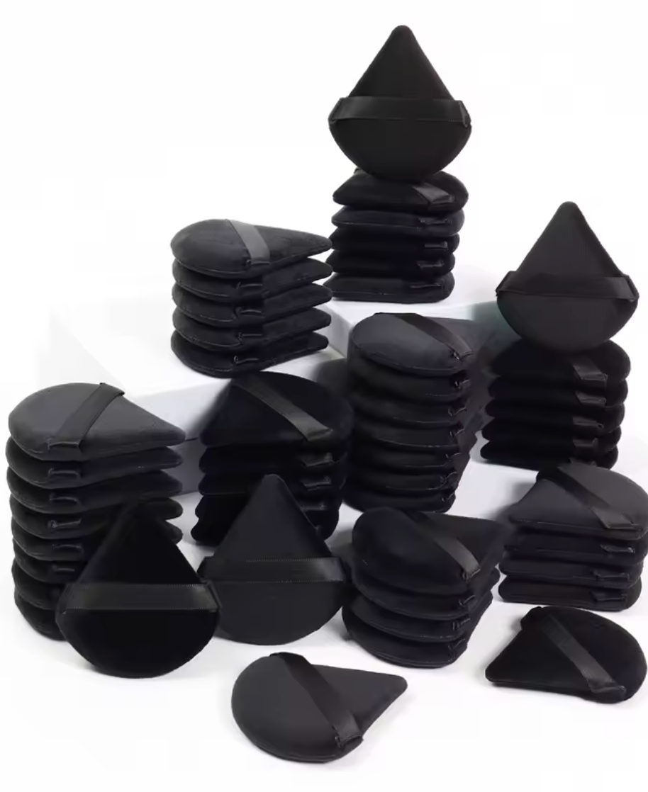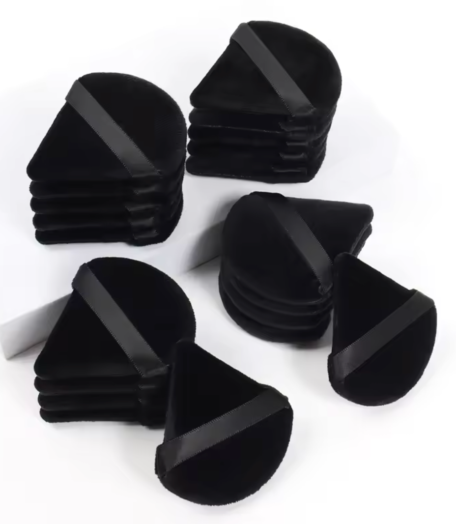 Musta kolmionmuotoinen puuterisieni kasvojen meikkiin – pehmeä samettinen meikkisieni nestemäisille ja puuterimaisille tuotteille